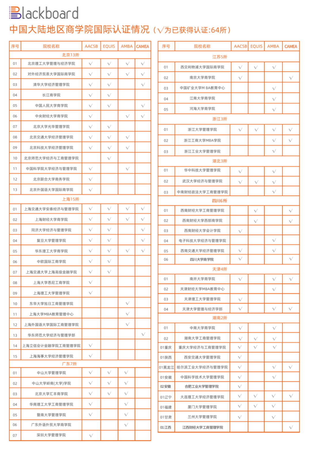 在全球提供商科课程的13670所商学院中,只有100+商学院获得了三重认证,相当于全世界只有不到1%的商学院获得了三重认证。